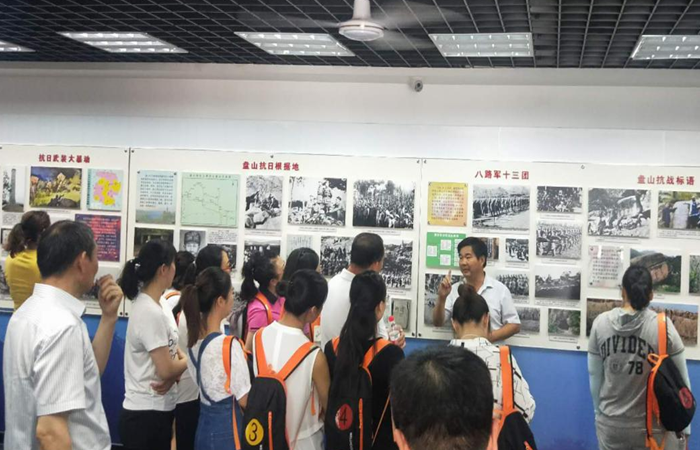 在紀念館內,聯(lián)合村黨支部龍書記就一幅幅圖片、一件件實物、一段段影視材料為大家進行了認真地講解,對在抗日戰(zhàn)爭時期以包森、李子光、田野、楊媽媽等為代表的聯(lián)合村抗日軍民的事跡作了詳細地解說。在龍書記講到蓮花山七勇士英雄壯舉的事跡時,全體人員在他們的雕像前久久駐足凝視,深切地感受到今天的幸福生活來之不易,是用無數革命先烈用鮮血和生命換來的。參觀結束后,第一黨支部在紀念館入口處“入黨誓詞”展板前舉行了重溫入黨誓詞活動,參加活動的黨員面對黨旗、舉起右手、莊嚴宣誓。