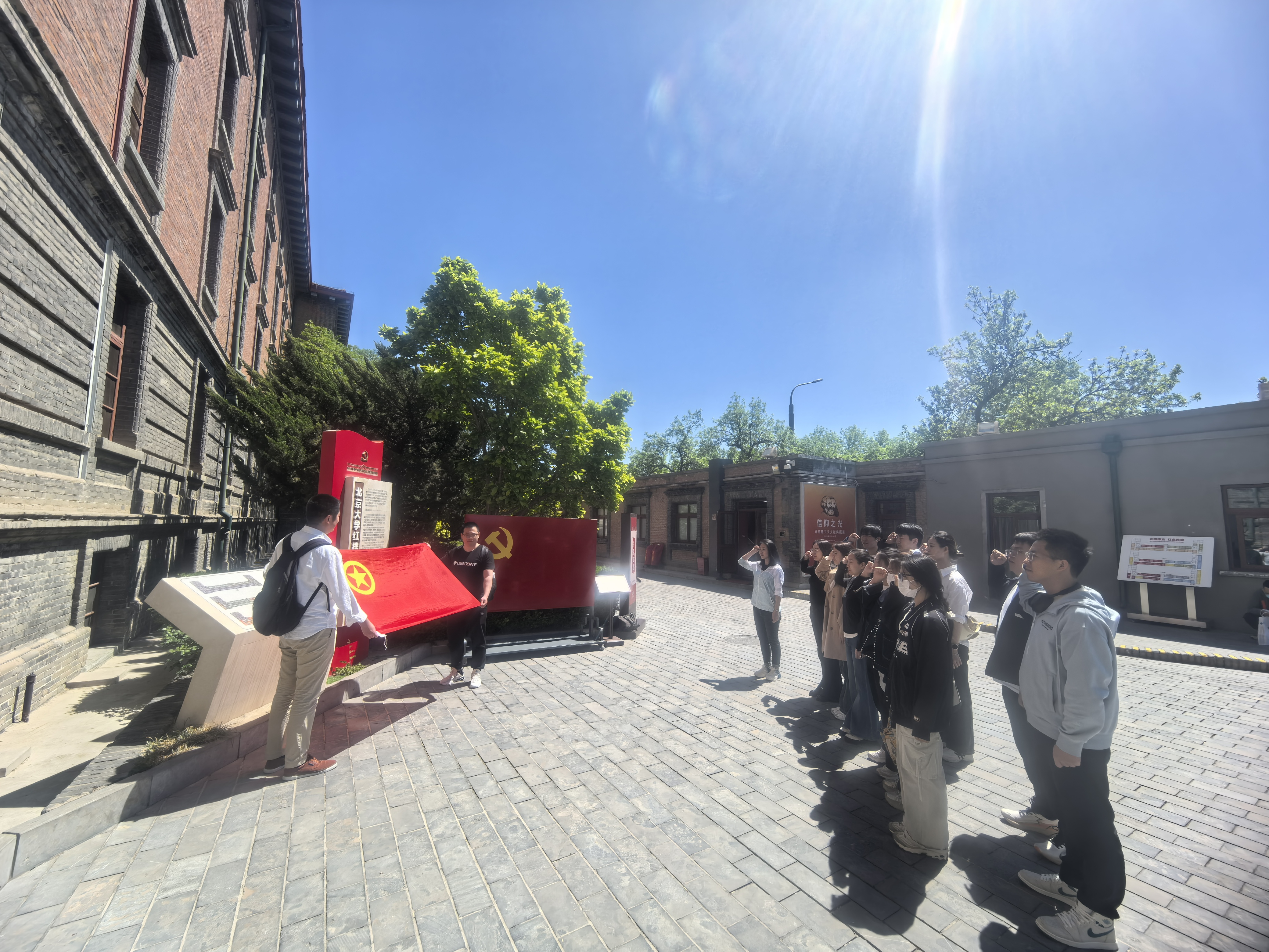 走進(jìn)北大紅樓,團(tuán)員青年們根據(jù)參觀指引按照歷史發(fā)展脈絡(luò)的6個(gè)部分、67個(gè)展室依次進(jìn)行了參觀,一幅幅圖片、一件件實(shí)物、一段段視頻,全面生動(dòng)展現(xiàn)了中國共產(chǎn)黨早期在北京進(jìn)行革命活動(dòng)的光輝歷史,大家不時(shí)上前駐足仔細(xì)觀看,互相交流心得體會(huì),重溫馬克思主義早期在中國傳播的光輝歷程,深刻思考新時(shí)代年輕干部的使命與責(zé)任。在北大紅樓外,全體團(tuán)員在團(tuán)旗下重溫入團(tuán)誓詞。