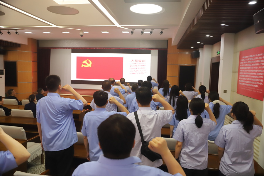 參觀最后,國藥工業(yè)黨群工作部主任助理宛美帶領(lǐng)黨員干部面向黨旗重溫入黨誓詞,叩問入黨初心,進(jìn)一步堅定了為共產(chǎn)主義事業(yè)奮斗的理想信念。