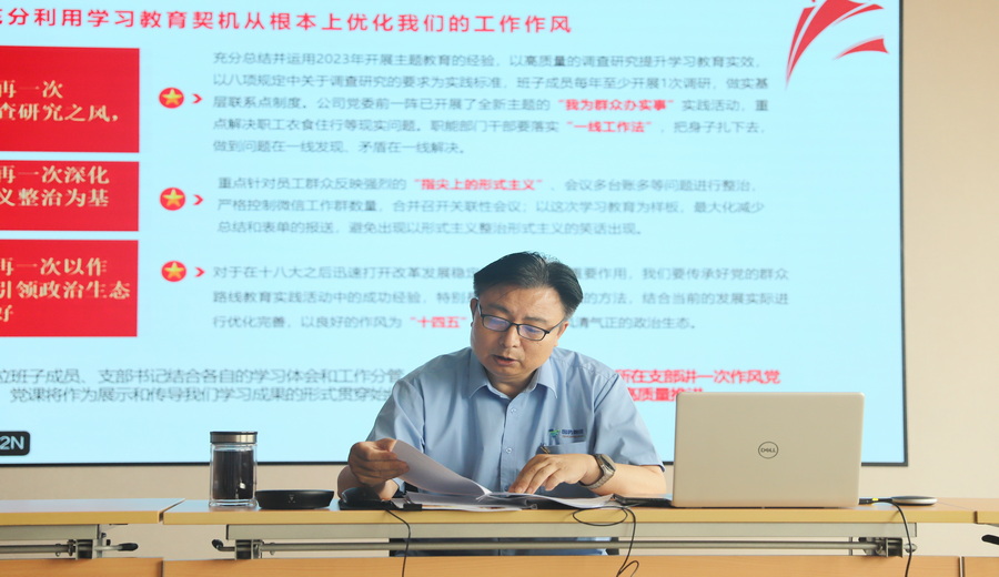 劉統(tǒng)斌在總結講話中強調,深入貫徹中央八項規(guī)定精神學習教育不是一蹴而就的,而是一項長期的政治任務,要確保當前學習教育任務圓滿完成,同時又要著眼長效發(fā)展,為今后持續(xù)深入貫徹中央八項規(guī)定精神奠定堅實基礎。劉統(tǒng)斌對下一步做好學習教育工作提出六點要求:一是要堅持政治引領,筑牢思想根基;二是要堅持以上率下,強化頭雁效應;三是要堅持制度固本,健全長效機制;四是要堅持問題導向,深化專項整治;五是要堅持文化浸潤,厚植清廉根基;六是要堅持數(shù)字賦能,提升監(jiān)督效能。他要求,全體干部職工要以中央八項規(guī)定精神為指引,努力學習好、運用好黨的理論知識和經(jīng)驗做法,持之以恒正風肅紀,以高度的政治責任感和使命感,認真落實好各項要求,扎實做好各項工作,推動學習教育取得更加豐碩的成果,以優(yōu)異成績迎接黨的104歲生日,為公司改革發(fā)展作出新的更大貢獻!