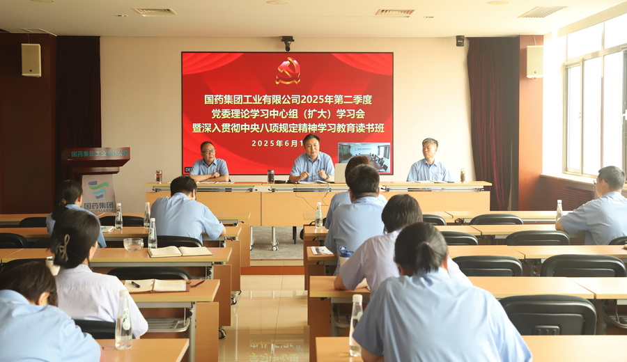 ????為進一步加強政治理論學習,強化思想理論武裝,扎實推進深入貫徹中央八項規(guī)定精神學習教育,6月19日,國藥工業(yè)黨委召開2025年第二季度黨委理論中心組(擴大)學習會暨深入貫徹中央八項規(guī)定精神學習教育讀書班,國藥工業(yè)黨政班子成員、中層管理人員、各支部書記與委員、團總支書記與委員以及黨群工作部工作人員參加了會議,黨委書記、總經(jīng)理劉統(tǒng)斌主持會議。