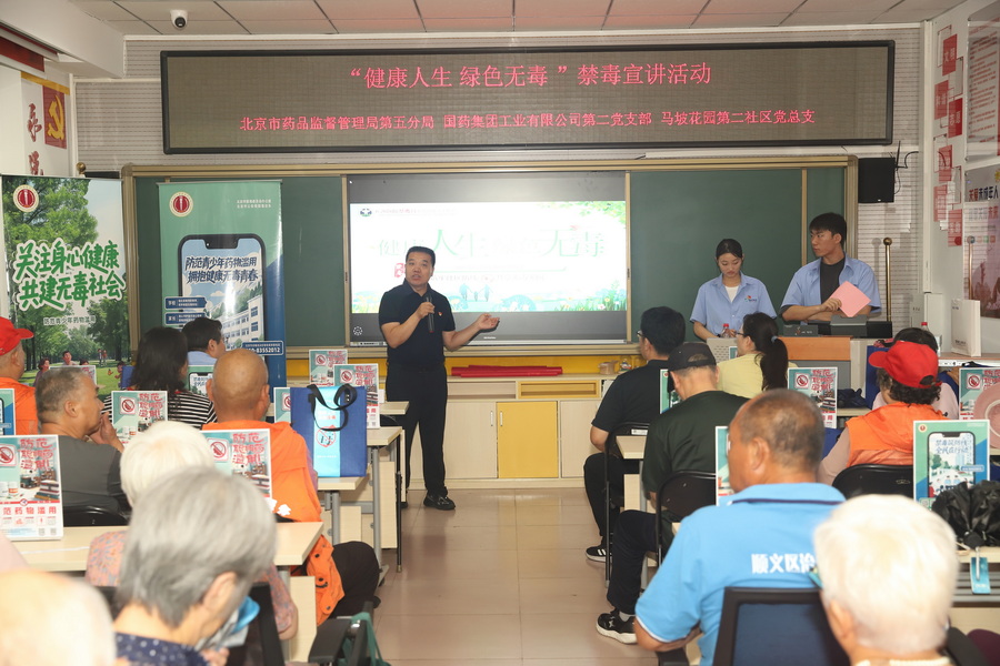 為深化黨建引領(lǐng)作用,踐行社會(huì)責(zé)任,6月27日,國(guó)藥工業(yè)第二黨支部創(chuàng)新主題黨日活動(dòng)形式,聯(lián)合北京市藥品監(jiān)督管理局第五分局,深入馬坡花園第二社區(qū),共同開(kāi)展了一場(chǎng)主題鮮明、內(nèi)容豐富的“健康人生,綠色無(wú)毒”禁毒宣傳主題黨日活動(dòng),將禁毒知識(shí)精準(zhǔn)送達(dá)居民身邊,筑牢社區(qū)安全防線。北京市藥監(jiān)局第五分局副局長(zhǎng)高興旺、馬坡花園第二社區(qū)書(shū)記岳佳、國(guó)藥工業(yè)第二黨支部書(shū)記王向揚(yáng)和黨員、積極分子等參加了活動(dòng)。