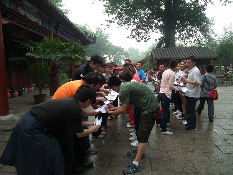 這是廊坊分公司建立以來組織的第一次全員拓展活動?;顒佑蓛刹糠纸M成:第一部分為“游覽景區(qū)攀高峰”。全體隊員分為四個小隊,向海拔800米高的紅螺寺頂峰攀登。雨水打濕了石階,汗水淋透了衣服,隊員們沒有畏懼、沒有退縮,在隊長的帶領下,相互鼓勁、相互幫扶,咬緊牙關征服了陡峭的山峰,勝利地登上了峰頂,享受到了勝利的快樂。第二部分是“團隊協(xié)作勇奪冠”。四個小隊在隊長的統(tǒng)一指揮下進行了“接龍傳珠”、“攜手通關”、“水球驚轉”等游戲,隊友們將智慧、行動和能力有機地結合起來,相互信任、相互依托、配合默契,取得了最后的勝利。