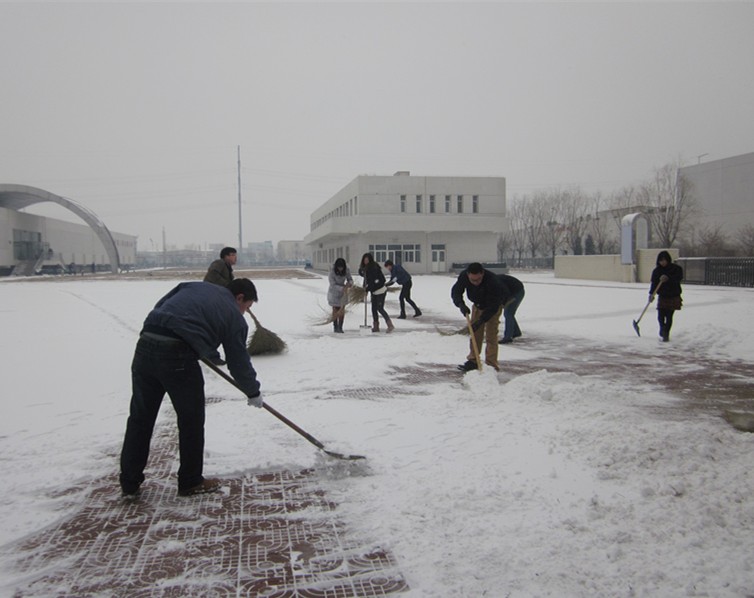 2月7日,春節(jié)長假后上班的第一天,迎來了2014年的第一場瑞雪。雪情就是命令,國工有限廊坊分公司全體員工早晨一上班,就投入到掃雪工作中,在飄舞的雪花中,大家鏟的鏟,掃的掃,相互配合,干得熱火朝天,形成了嚴寒冬日里一道靚麗、和諧的風景線。經(jīng)過近兩個小時的共同努力,公司辦公樓、食堂等主干路段的積雪被清掃干凈,主要入口、彎道等處積雪也被全部鏟除,確保了公司內(nèi)部道路暢通。
