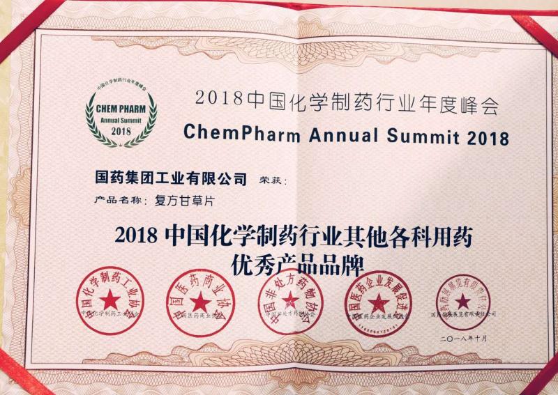 在本次峰會(huì)上我公司“復(fù)方甘草片”榮獲2018中國化學(xué)制藥行業(yè)其他各科用藥優(yōu)秀產(chǎn)品品牌獎(jiǎng),“藥用色譜分離純化工藝項(xiàng)目”獲得2018年中國化學(xué)制藥行業(yè)綠色制藥特設(shè)獎(jiǎng)。本次峰會(huì)有效擴(kuò)大了公司品牌的知名度及影響力。(人力資源行政部供稿)