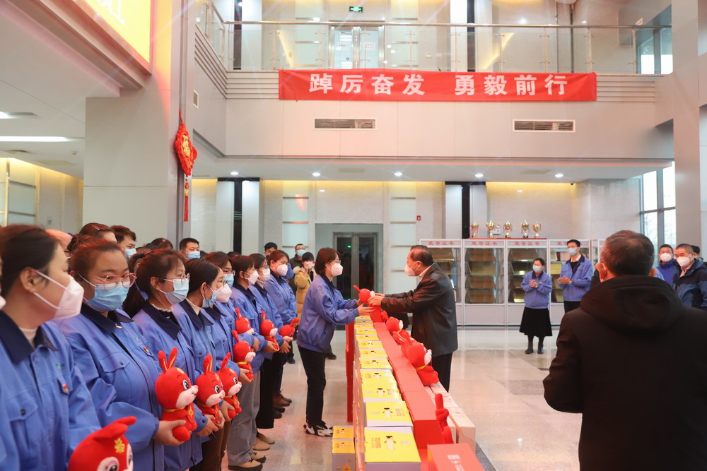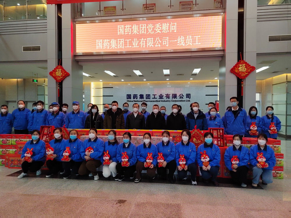 2023年1月10日,在新春佳節(jié)來臨之際,國藥集團(tuán)黨委書記、董事長(zhǎng)劉敬楨看望慰問國藥工業(yè)奮戰(zhàn)在穩(wěn)價(jià)保供一線的員工,為他們送去國藥大健康慰問品和新春美好祝福。