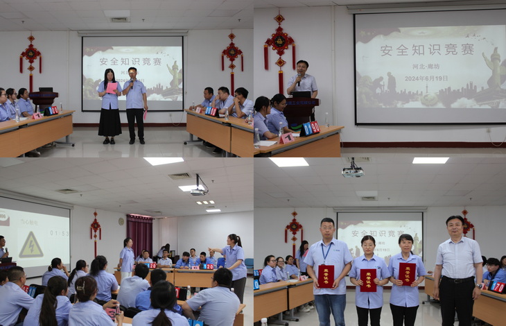 6月19日,廊坊分公司舉辦了“安全知識競賽”,由生產(chǎn)一線及輔助部門組成的八支隊(duì)伍踴躍參賽,國藥工業(yè)黨委書記、總經(jīng)理劉統(tǒng)斌等黨政班子成員觀摩了活動(dòng)?,F(xiàn)場氣氛活躍有序,競賽內(nèi)容涵蓋了安全生產(chǎn)法律法規(guī)、消防和職業(yè)健康、生產(chǎn)安全等方面知識,通過必答題、合作題、你來比劃我來猜、看圖識隱患、觀眾有獎(jiǎng)競猜等環(huán)節(jié)賽出了廊坊團(tuán)隊(duì)的風(fēng)采。
