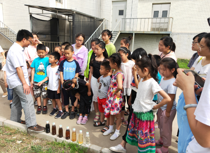 活動開始,黨支部書記聞東梅介紹了本次活動的安排要求和注意事項。然后,孩子們分別參觀了監(jiān)控室、污水處理站、包材庫、綜合原料車間和制劑車間等區(qū)域,每到一個地方,都會有各區(qū)域專業(yè)負責同志分別給孩子們介紹生產過程中的相關專業(yè)知識。在參觀過程中,小朋友們不僅充滿了好奇,也充分展現(xiàn)探索知識的求知欲,一個個都變成了“十萬個為什么”,負責講解的同志針對孩子們的提問,逐一給予了解答。